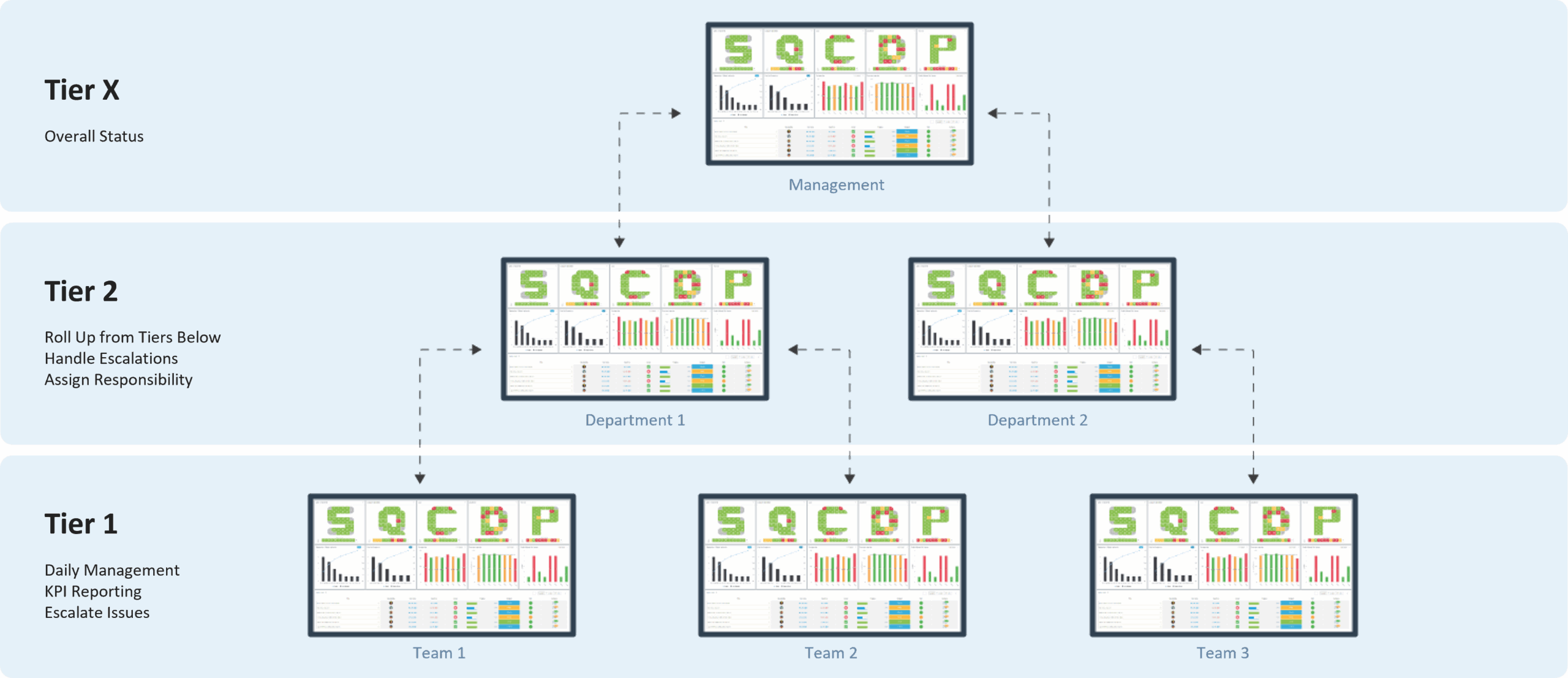 Easily build a clear, digital structure for daily management, enabling teams and leaders to align KPIs, issues, and actions across organizational levels and follow up consistently.
